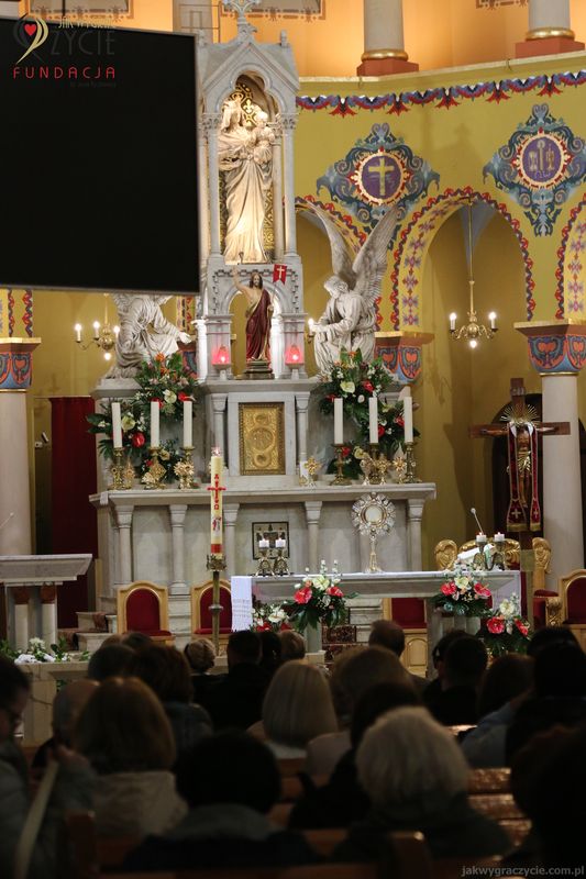 Mszę św. poprzedziła adoracja Najświętszego Sakramentu. Modlitwę ubogacił Zespół Ewangelizacyjny z Parafii Świętej Rodziny w Ostrowie.